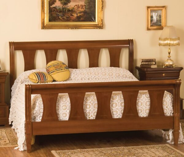 Letto intarsiato disponibile in noce e ciliegio pediera bassa_art. C/303 disponibile anche con pediera alta